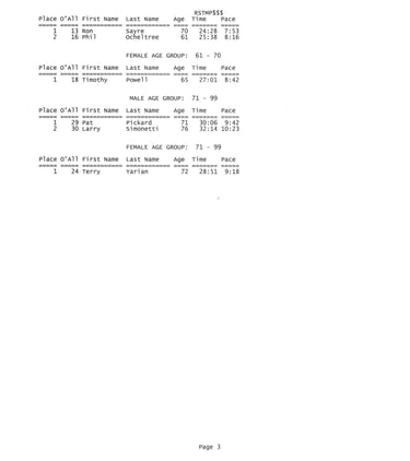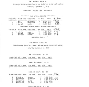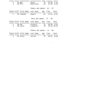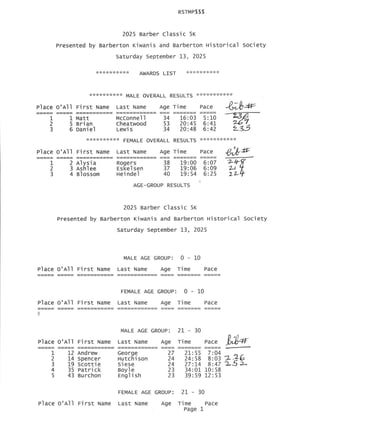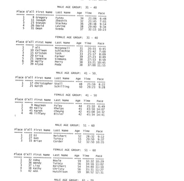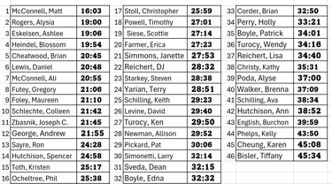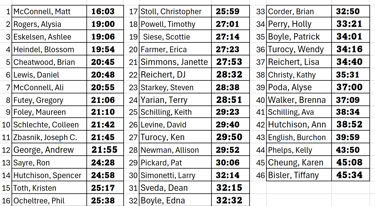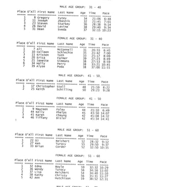 Results of 5K Race