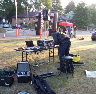 Dwayne Dixon setting up his sophisticated DJ equipment
