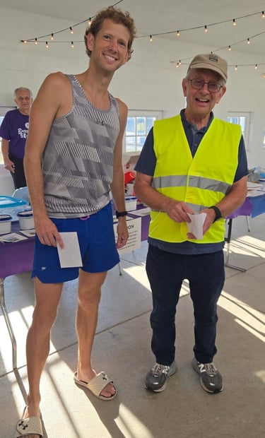 Matt McConnell, overall winner of 5k at 16 minutes and 3 seconds, receives cash award.